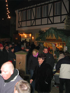 Dieser idyllische Weihnachtsmarkt wird um 15:00 Uhr vom Posaunenchor der evangelischen Kirche eröffnet. Nach dieser Einstimmung laden bis 22:00 Uhr 37 festlich geschmückte Ständen, die überwiegend ein kunsthandwerkliches Sortiment anbieten, zum Bummeln, Genießen, Kaufen, Verweilen ein. Doch das ist noch nicht alles. Auf dem Dorfplatz, unter der Linde, steht ein Nikolausbriefkasten. Dort können alle Kinder einen Brief an den Weihnachtsmann einwerfen. (um einen Kostenbeitrag von € 1,50 wird gebeten). Ganz wichtig ist, dass niemand vergisst seinen Absender anzugeben. Denn der Nikolaus und seine, ihm zur Seite stehenden Helfer, versprechen allen Kindern noch vor Weihnachten ganz individuell auf ihre Briefe zu antworten. Selbstverständlich liegt jedem Brief eine kleine Weihnachtsgeschichte bei. Wer möchte kann seinen Brief auch dem Nikolaus persönlich übergeben. Denn der Nikolaus stapft an beiden Tagen um 17:00 Uhr mit seinen Wichteln über den Weihnachtsmarkt, um alle Kinder mit kleinen Leckereien zu beschenken.