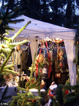 Die weihnachtlich geschmückten Stände bieten eine Vielfalt an selbst hergestellten Waren. Mit Sicherheit finden Sie hier etwas Schönes und Ausgefallenes für den Gabentisch oder die Weihnachtsdekoration. Da gibt es Kunstgewerbliches, Töpferarbeiten aller Art, floristische Arbeiten aus Naturmaterialien, Handwebwaren, Fensterbilder, Schmuck, Schnitzereien, Teddybären, Patchworkarbeiten, und vieles mehr.