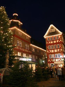 Vom 26.11. bis 23.12. lässt es sich in Herborns romantischer Atmosphäre ganz besonders gemütlich shoppen. Abseits von stickigen Einkaufspalästen bieten die Herborner Einzelhändler alles, was man für einen schönen Einkaufsbummel braucht. In der malerischen Kulisse der historischen Altstadt gibt es von bekannten Filialisten bis hin zu einzigartigen Fachgeschäften, die man sonst nirgendwo mehr findet, alles, was das Herz begehrt. Wer müde vom Bummeln ist, kann sich in einem der vielen Cafés, Restaurants oder Eisdielen verwöhnen lassen. Rund um den historischen Marktplatz sind ab Ende November einige (ca. 4-5) kleine Buden aufgebaut, die die Besucher mit Speis‘ und Trank verwöhnen werden. Es gibt wohl kaum eine Stadt, die ganz ohne großen hektischen Weihnachtsmarkt so viel Atmosphäre und Flair hat wie Herborn! Das werden auch Sie feststellen, wenn in der Dämmerung Tausende von Giebellampen die romantischen Fachwerkhäuser illuminieren. Weitere Termine: Krammarkt am 06.12. Offenes Singen am 17. Dezember um 17:30 Uhr am Marktplatz. Großes Weihnachtskonzert mit Gewinnspiel am 18.12.2010 am Marktplatz.