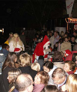 Der Nikolaus und Engel Tanja wurden, in Ermangelung an Rentieren, von den Weihnachtsmännern auf einem großen Schlitten durch die Neue Straße gezogen um dann die Bescherung zu zelebrieren. Die Helfer konnten sich kaum des Ansturmes erwehren, der nun folgte. Doch schließlich konnte auch das letzte Kind sein Präsent in Empfang nehmen und der Nikolaus verabschiedete sich, nicht ohne den Hinweis, dass er und Engel Tanja sich jetzt schon auf ihren Besuch im nächsten Jahr freuen.