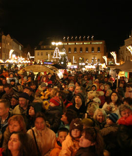 Zum einen verleihen ca. 22 mittelalterlich gestaltete Handwerker- und Verkaufsstände, wie z. B. Glasmaler, Kerzenzieher, Metstand u.v.m. sowie Musikanten mit mittelalterlicher Weihnachtsmusik dem Postplatz ein historisches Ambiente. Verkaufsstände am Marktplatz bieten ein traditionelles Angebot, wie z. B. Räucherstäbchen, Holzkunst, Duftkerzen, Strickwaren oder Lichter.