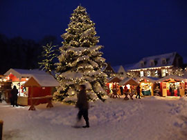Die Weihnachtshütten öffnen mittwochs bis sonntags von 14:00 bis 19:00 Uhr: hier finden Sie Handgefertigtes aus Holz, Filz und Papier, Gestricktes, originellen Schmuck, feinste Marmeladen und Gewürze, handgearbeitete Kerzen, und vieles mehr, was nicht alltäglich ist.