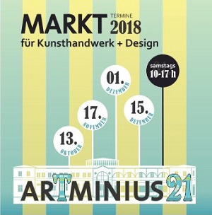ArTminius21, der Markt für Kunsthandwerk und Design, öffnet am Samstag, dem , 05. April, 10. Mai, 14. Juni, 11. Oktober, 01. und 22. November, und , von 10:00 bis 17:00 Uhr in der Arminiusmarkthalle in Berlin.