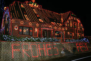 Das Weihnachtshaus rechtzeitig zur Adventszeit für Kinder und Erwachsene vorweihnachtlich zu beleuchten, ist das Hobby von Familie Vogt. Der Ort Calle liegt in der Mittelweser-Region, genauer in der Samtgemeinde Grafschaft Hoya zwischen den Ortschaften Bücken und Asendorf, ca. 25 Kilometer nördlich der Stadt Nienburg/Weser. Im Jahr 1999 begann die Geschichte des weihnachtlich beleuchteten Hauses nach einem Besuch in Amerika. Die Idee entstand und die Reisetaschen waren mit Lichterketten gefüllt. Am Anfang wurden erst einmal vereinzelt Sträucher und Bäume im Garten mit den kleinen Lämpchen geschmückt. Doch Familie Vogt war mit dem Lichter-Weihnachts-Virus infiziert. Es wurden immer mehr, so dass heute ein unglaubliches Lichtermeer zu sehen ist. Im Jahr 2008 wurde das Haus mit über 300.000 Lichtern geschmückt und beleuchtet. Jetzt sind es bereits ca. 500.000. „Mein Traum sind eine Million Lichter“, sagt Rolf Vogt. Weiterhin wird das Weihnachtshaus in Calle mit vielen bunten, blinkenden und beweglichen Lichtern sowie Silhouetten rundherum geschmückt. Das Weihnachtshaus ist wohl das größte Weihnachtshaus Deutschlands, wenn nicht sogar Europas. In einem Zelt werden warme Getränke wie heiße Schokolade oder Glühwein und Bratwürste angeboten. Dort steht auch eine beleuchtete winterliche Modellandschaft, die von Familie Vogt kreiert wurde. Für den Besucherandrang an den Wochenenden wurde eigens ein Parkplatz angelegt, um keinen Verkehrsstau zu erzeugen. Viele Fernsehsender haben schon live oder als Reportage von diesem ungewöhnlichen Weihnachtshaus berichtet.