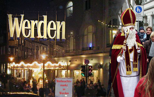 Der Weihnachtsmarkt in Werden öffnet traditionell am ersten Adventwochenende, vom bis , donnerstags und freitags von 17:00 bis 22:00 Uhr, samstags von 11:00 bis 22:00 Uhr, und sonntags von 11:00 bis 20:00 Uhr am Rathausplatz in Essen-Werden.