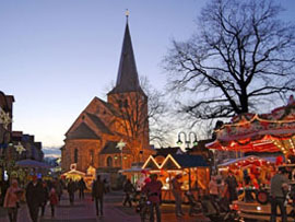 Weihnachtliche Stimmung am alten Markt mit dem Hildener Winterdorf.