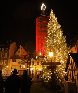 Kitzingen leuchtet, der Kitzinger Weihnachtsmarkt rund um die größte Adventskerze Bayerns, öffnet traditionell am dritten Adventwochenende, vom bis , freitags von 16:00 bis 20:00 Uhr, samstags und sonntags von 12:30 bis 20:00 Uhr in der Altstadt Kitzingen. Die größte Adventskerze Bayerns, der leuchtende Kitzinger Marktturm, steht dabei im Mittelpunkt.
