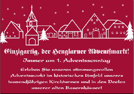 Im historischen Ortskern des Dorfes erwarten die Henglarner am ersten Advent, dem , sonntags von 13:00 bis 19:00 Uhr wieder viele Gäste aus nah und fern. Zahlreiche Marktstände verleihen dem Henglarner Adventsmarkt im Schatten des 1.000-jährigen Kirchturms ein besonderes Flair.