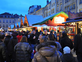A Metz, le marché de Noël du au dans le cœur historique de la ville est un moment privilégié pour préparer les fêtes de fin d'année. Différents sites du centre-ville historique (Place Saint Louis, Forum Saint Jacques, Place Saint Jacques et Place de la République) prennent des allures de village avec les chalets en bois de sapin lazuré de différentes couleurs, une véritable crèche et un sapin décoré. Des lieux magiques et merveilleux pour les enfants avec de nombreuses animations et qui attirent de nombreux visiteurs par ses ambiances féériques et très conviviales ...
