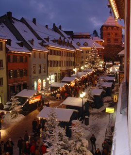 Das vielfältige Angebot in den rund 35 mit Tannenreisig umkränzten Hütten bietet manche Geschenkidee. Umrahmt wird alles von einem weihnachtlichen Programm auf der Bühne vor dem Alten Rathaus. Für Kinder gibt es an einigen Tagen eine ganz besondere Überraschung: Einen lebendigen Esel mit seinem Hirten. Der Hirte verteilt kleine Geschenke an die Kinder.