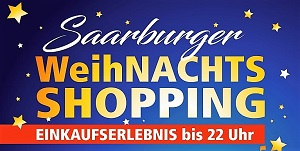 Saarburger WeihNachts-Shopping am dritten Adventfreitag, dem , von 09:00 bis 21:00 Uhr in der Saarburger Innenstadt.