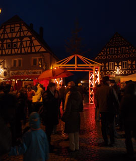 Der Weihnachtsmarkt in Scheinfeld öffnet traditionell am dritten Adventwochenende, dem und , samstags von 16:00 bis 21:00 Uhr und sonntags von 14:00 bis 19:00 Uhr am Marktplatz in der Hauptstraße der Stadt Scheinfeld.