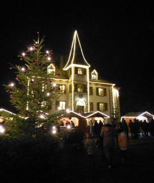 Ein gemütlicher Bummel vor der malerischen Kulissen des beleuchteten Wasserschloss Entensteins versetzt jeden Besucher in festliche Stimmung.