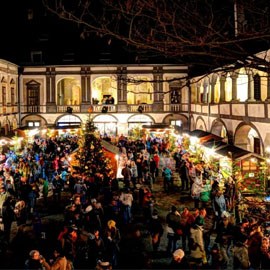 Genießen Sie Punsch, Glühwein und gebratene Maroni oder frisch zubereitete Crêpes im wunderschönen Innenhof des Schlosses. Im Schlosskeller bietet das Kaffeehaus hausgemachte Mehlspeisen und unsere Vinothek offeriert exzellente burgenländische Weine. Auch die Kobersdorfer Spezialitäten, das Kobersdorfer Schlossbräu und Produkte der Firma Waldquelle, finden sich dort ein! Das Angebot unserer vielen Aussteller ist vorwiegend selbstgemacht und reicht von Weihnachtsbäckerei, speziellen Teigwaren, Likören, Marmeladen, Pestos, Wildwaren bis hin zu Keramik, Handarbeiten, Designerschmuck, Taschen, Tüchern, Kerzen, Christbaumschmuck, kleinen Krippen, Weihnachtsgestecken, Adventkränzen, speziellen Geschenkartikeln u. v. m.