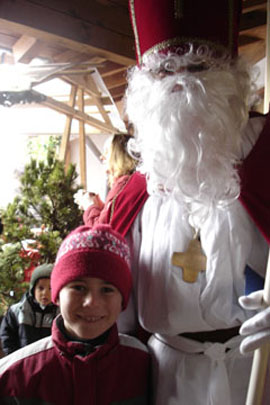Seit vielen Jahren ein Erfolg ist die Aktion „Engel für Mali“. Der Erlös fließt voll in das Wasserprojekt für das Dogondorf Tereli an der Falaise. Feine Lebkuchenengel, gebacken und gestiftet von der „Rasenden Torte“ im Ort, werden mit bunten Perlen, Zuckerspritzguss und viel Fantasie dekoriert. Nie reicht die bereitgestellte Menge. Es empfiehlt sich für das Malen der Keramik und das Verzieren der Lebkuchenengel den Vormittag zu nutzen. Da ist der Gabensack des hl. Nikolaus außerdem noch gut gefüllt und auch die Plätze in der für Kinder kostenlosen Kutsche sind noch eher zu ergattern.