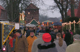 Holzhütten, Glühweinstände, Mandelbuden, Kinderkarussell und Kunsthandwerk laden zum Bummel über den gemütlichen Markt ein. Sonntagnachmittag verteilt der Weihnachtsmann viele bunte Tüten. Vereine und Musikgruppen tragen zum Programm an beiden Tagen bei. Sonnabends um 18:00 Uhr zum Untenehmerumtrunk festliche Trompetenklänge aus dem Glockenturm.