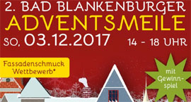 Die Bad Blankenburger Adventsmeile öffnet traditionell am ersten Adventsamstag, dem , von 14:00 bis 19:00 Uhr in der gesamten Innenstadt Bad Blankenburg.