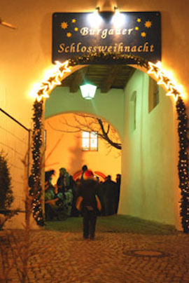 Die Burgauer Schlossweihnacht öffnet traditionell am dritten Adventwochenende, vom bis , freitags von 19:00 bis 23:00 Uhr, samstags von 16:00 bis 23:00 Uhr, und sonntags von 14:00 bis 20:00 Uhr in der Markgrafenstadt Burgau.