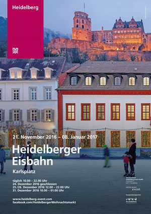 Auf dem Heidelberger Karlsplatz gibt es eine der schönsten Eisbahnen Deutschlands. Mit herrlichem Blick auf das Schloss, unter stimmungsvoll geschmückten Bäumen und bei musikalischen Klängen können Gäste und Bürger auf einer Open-Air-Eisbahn ihre Runden drehen.