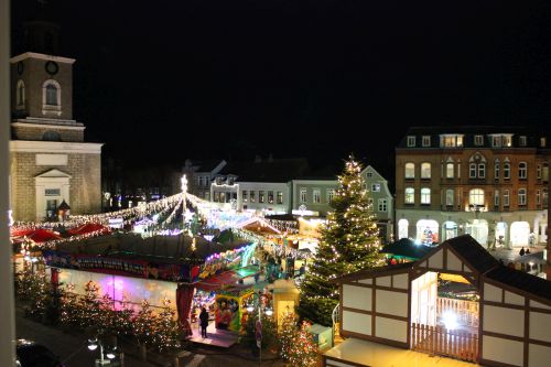 Der Weihnachtsmarkt im Herzen der Stadt bietet ein breites Angebot an Geschenkideen, Kunsthandwerk und kulinarischen Leckereien für die ganze Familie. Kunsthandwerker in weihnachtlich gestalteten Holzhäuschen bieten Adventsschmuck und Kunsthandwerk aus dem gesamten Bundesgebiet an.