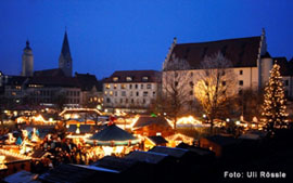 Noch heute duftet es auf dem Theaterplatz zwischen den tannengeschmückten Holzbuden nach gebrannten Mandeln, Bratäpfeln und Glühwein. Mehr als vierzig Holzhäuschen verleihen dem Ingolstädter Christkindlmarkt eine anheimelnde Atmosphäre. Natürlich werden neben Geschenkartikeln auch typisch bayerische Gaumenfreuden und Süßwaren angeboten.