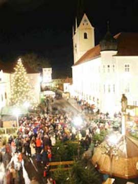 Umrahmt von den historischen Gebäudefassaden des ehemaligen Augustiner-Chorherren-Stifts erleben die Besucherinnen und Besucher rund um den Marienbrunnen in liebevoll dekorierten Buden und Ständen ein vielfältiges Angebot für Gaumen und Gemüt. Es findet sich für jeden Geschmack das passende Geschenk: Weihnachtsartikel aller Art, von den selbstgemachten Weihnachtssternen bis hin zu traditionellen Gebäcken.