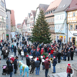 Am Sonntag werden die Besucher am Marktplatz gemeinsam mit den Ochsenfurter Chören Weihnachtslieder singen und am Samstag laden die jungen Musiker des „Ochsenfurter Jugendorchesters“ in die Spitalkirche ein. An beiden Tagen sind „Straßenmusiker“ im Adventsgässle unterwegs.
