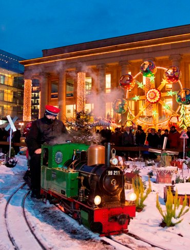 Wenn der Winter langsam Einzug hält, verwandelt sich Stuttgart in eine einzigartige Weihnachtsmarktstadt. Überall funkelt der weihnachtliche Lichterschmuck, es duftet nach Zimt und Vanille, nach Bratwurst und Glühwein und weihnachtliche Musik erklingt auf allen Plätzen. Die festlich illuminierte Innenstadt – mittelalterlich geprägt vom Alten Schloss, den Türmen der Stiftskirche und der grandiosen barocken Anlage des Neuen Schlosses – bildet alljährlich die traumhafte Kulisse des Stuttgarter Weihnachtsmarktes. Einzigartig sind die rund 280 herrlich dekorierten Stände. Ob Nikolaus mit Rauschebart, Engelsfiguren oder prächtige Winterlandschaften – in Stuttgart begeistern besonders die Buden mit ihren liebevoll geschmückten Holzdächern. Mit seiner mehr als 300-jährigen Tradition und dem attraktiven Angebot an weihnachtlichen Waren gehört der Stuttgarter Weihnachtsmarkt zu den prächtigsten in ganz Europa.