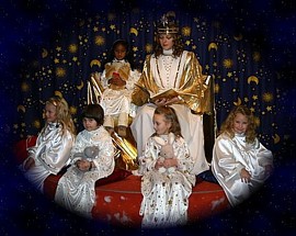 Dazwischen besucht das Christkind mit seinen Engelchen um 17:15 Uhr den Markt und verteilt Gaben für Kinder.