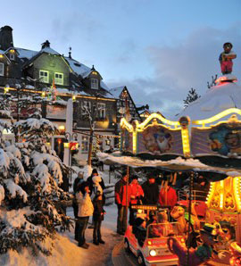 Bummeln, Stöbern, Feiern auf dem Wintermarkt der Sparkasse Hochsauerland, Flackerndes Feuer, weihnachtliche Musik, verführerische Düfte: Winterliche Sternstunden erleben Besucher bis Januar beim Winterberger Wintermarkt. Romantisch erstrahlt dann der Marktplatz Untere Pforte im Lichterglanz. Zauberhafte Atmosphäre schafft ein Winterwald.