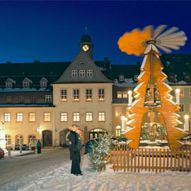 Die Ortspyramiden beginnen sich zu drehen. Weihnachtliche Musik und Glühweinduft erfüllen den Marktplatz der kleinen Bergstadt, wo auch das Licht eines großen Schwibbogens erstrahlt. Auch die unzähligen Lichterträger in den Fenstern symbolisieren die Sehnsucht des Bergmanns nach dem Licht und werden Sie abseits vom Trubel großer Weihnachtsmärkte auf das Weihnachtsfest einstimmen.